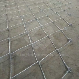 *Boundary rope. The boundary rope is used to enclose the four side of spider spiral rope mesh. It is made of steel wire rope and the diameter is thicker than the 12 mm. Most common diameter is 14 mm or 16 mm. The length of single boundary rope is shorten than 40 m and both side of the rope should be equipped with steel wire rope anchor.